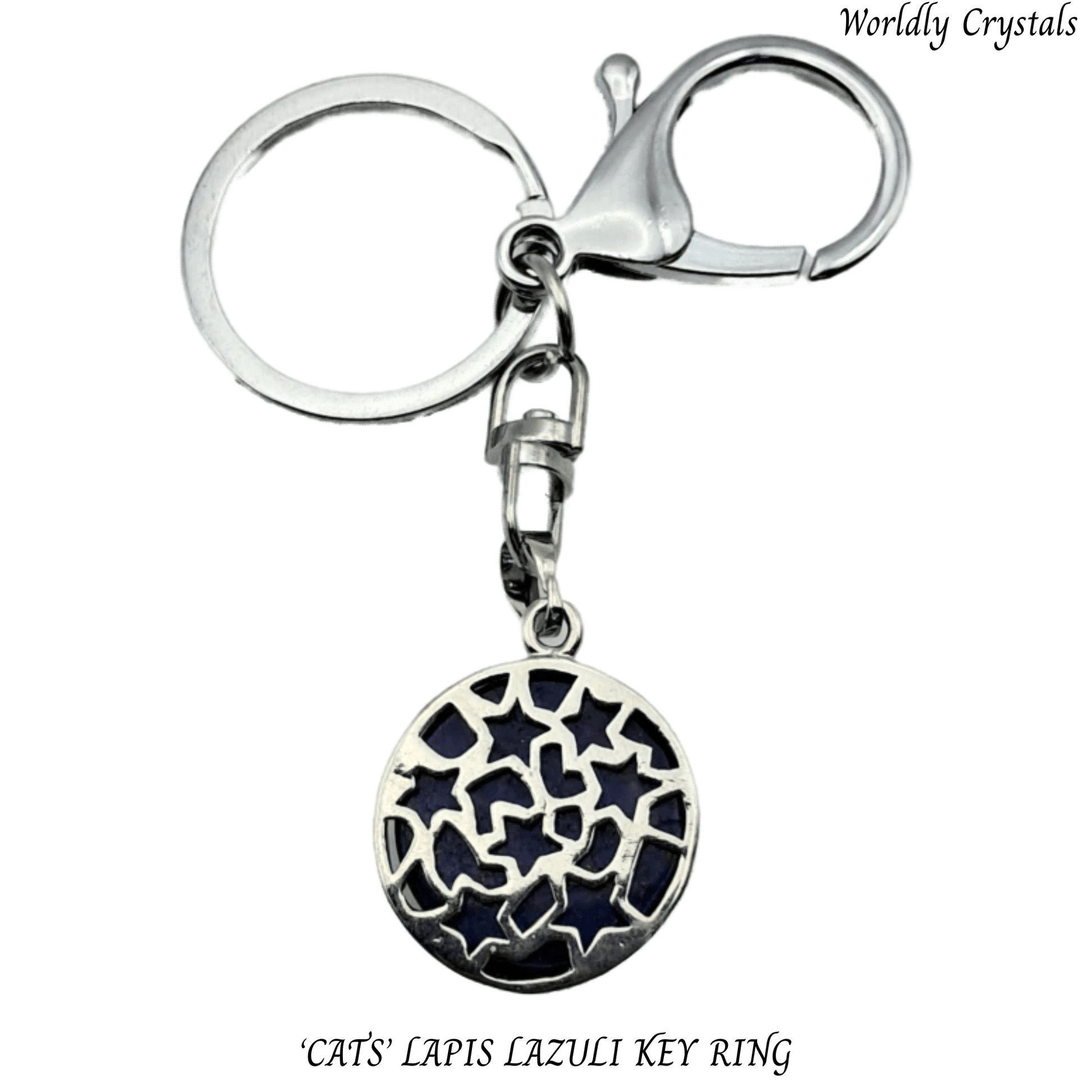 Lapis Lazuli key ring made from natural crystal. With a wonderful 'Cats' design. Each piece is one of a kind, adding a touch of beauty and positive energy to your keys, bag, or everyday essentials.